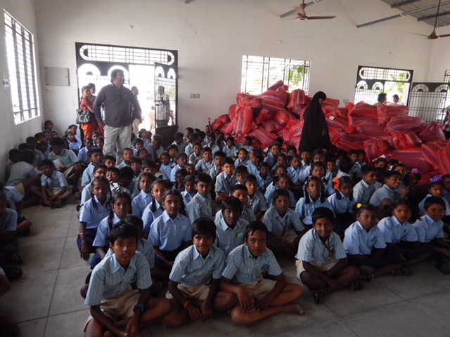 The first picture we set up was for 100 children. It was the best as the Governor for Rotary of that district assisted in getting the children to laugh as the picture was taken.